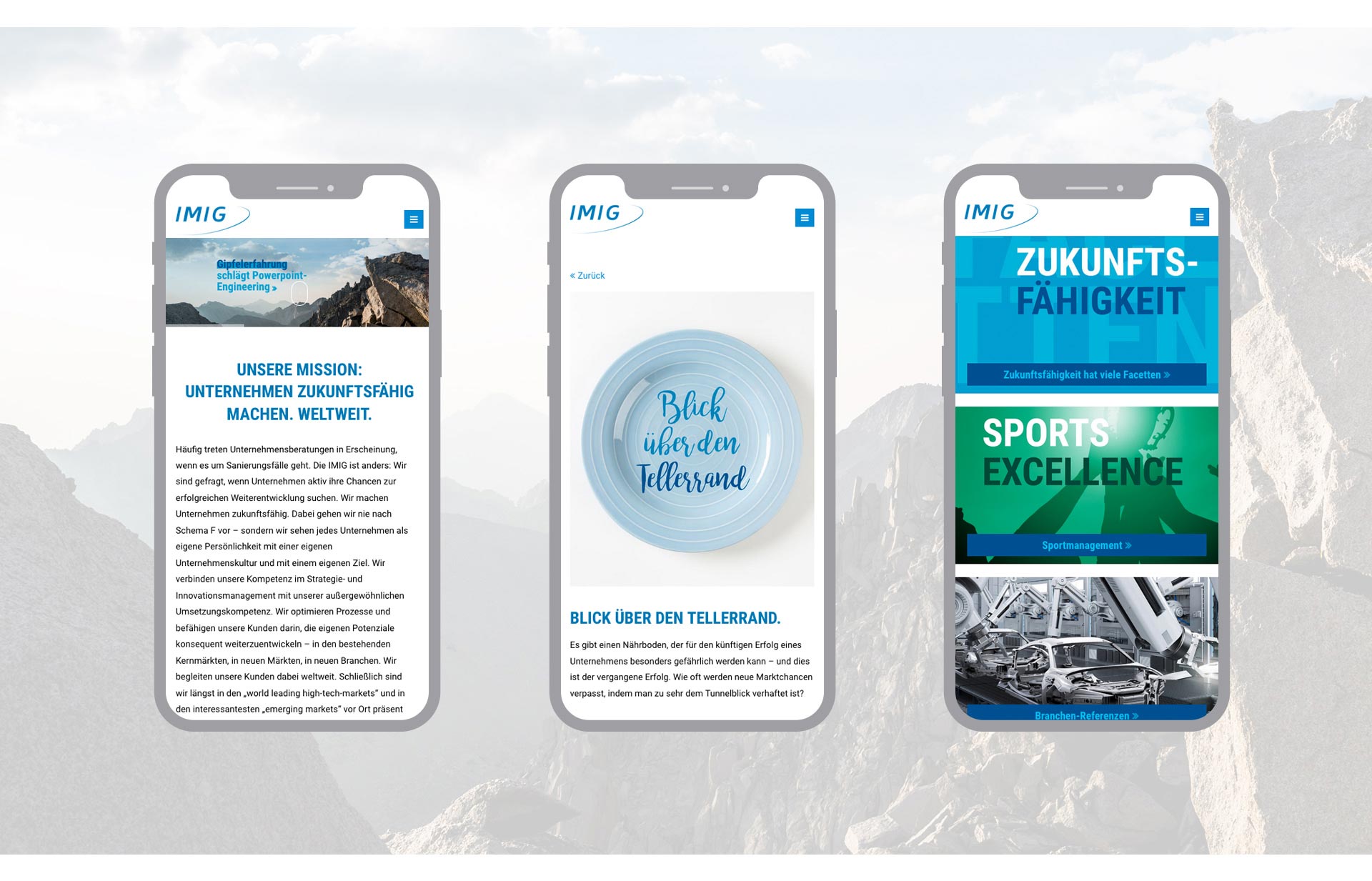 Der Markenworkshop bringt es schnell ans Licht: Die IMIG ist anders als gewöhnliche Unternehmensberatungen. Hier spricht man von Zukunftschancen statt von Sanierungsfällen. Hier setzt man auf viel Praxiserfahrung statt allein auf schöne Powerpoint-Vorträge. Der neue Kommunikationsauftritt vermittelt diese Haltung auf sehr lebendige Weise – als erstes zu sehen im neu entwickelten Internetauftritt.