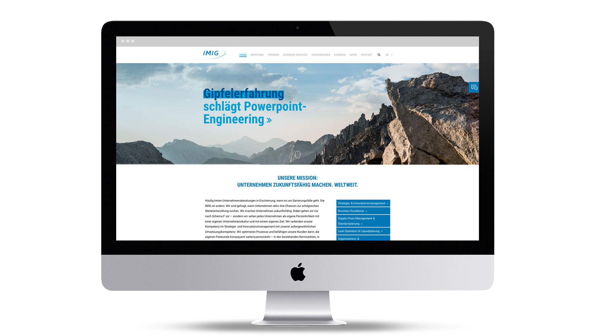 Der Markenworkshop bringt es schnell ans Licht: Die IMIG ist anders als gewöhnliche Unternehmensberatungen. Hier spricht man von Zukunftschancen statt von Sanierungsfällen. Hier setzt man auf viel Praxiserfahrung statt allein auf schöne Powerpoint-Vorträge. Der neue Kommunikationsauftritt vermittelt diese Haltung auf sehr lebendige Weise – als erstes zu sehen im neu entwickelten Internetauftritt.